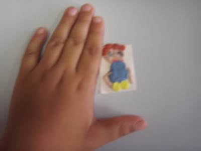 -Entregar uma cor e uma quantidade necessária para amodelagem de cada parte da figura: para a cabeça um pequenina porção rosa claro e pedir que façam uma bolinha, depois apertem para virar uma bolachinha e em seguida colocar sobre o papel; para o tronco ou camisa a mesma coisa;