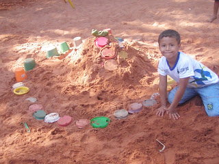Ah, e não esquecer os baldinhos, os amigos, o tamanho de cada "montanha-vulcão-castelo" construído com a areia!
