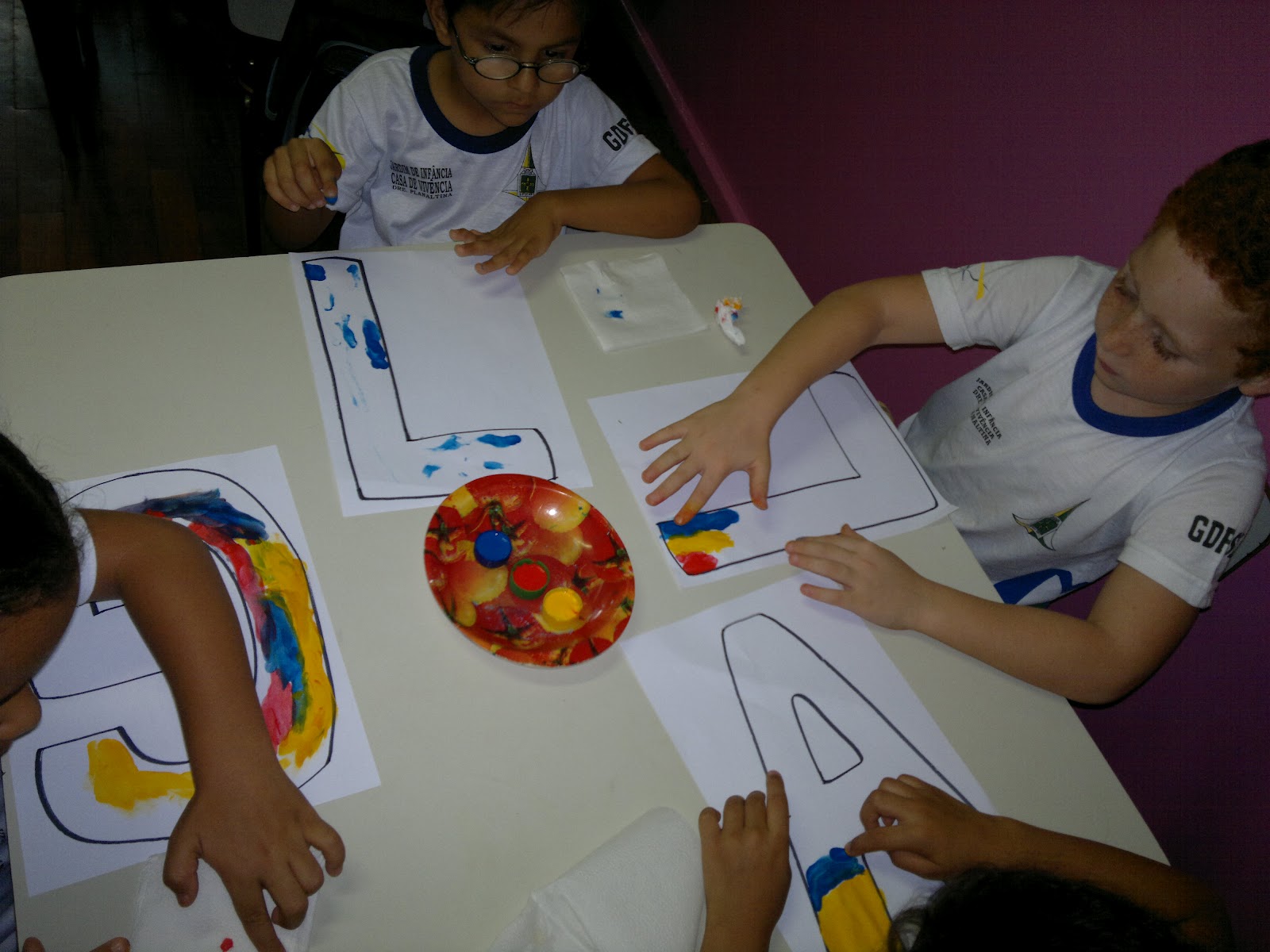 transformar a letra em corpo ao desenhar com cola colorida os membros e detalhes do corpo, cabeça etc