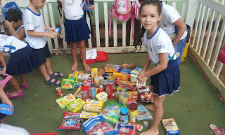 Os produtos (rótulos) foram levados pelas crianças, coisas do nosso dia-a-dia ... a Tia Nice fez uma boa seleção quanto a limpeza . Depois começamos a separar os produtos iguais e colocar jornais em alguns e a tia Nice lacrou tudinho com durex... alguns produtos ficaram igual ao o originalllll...kkk
