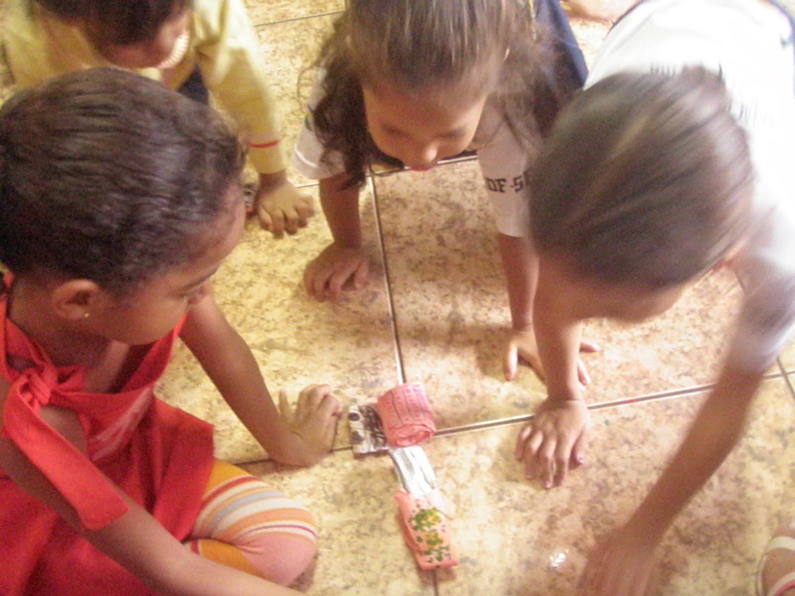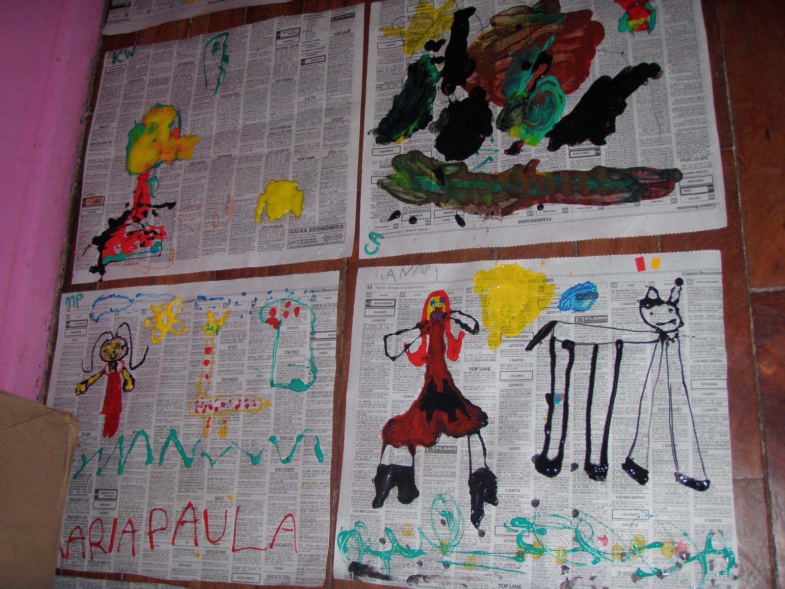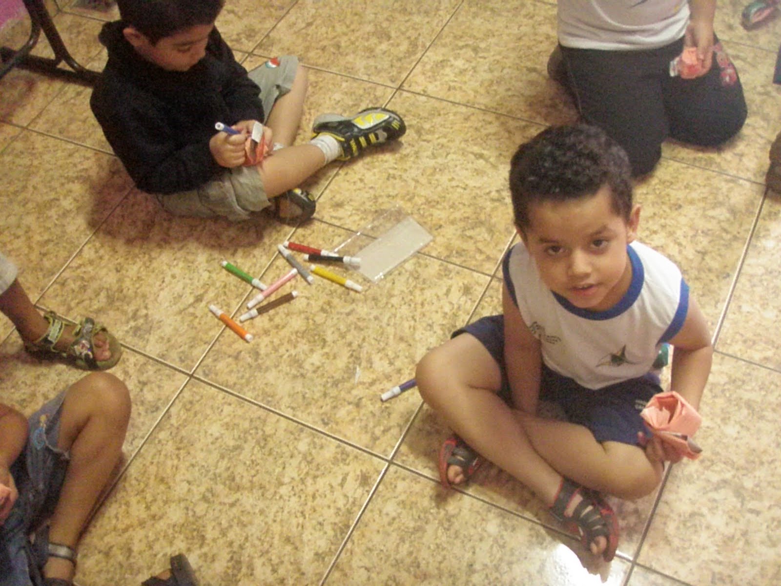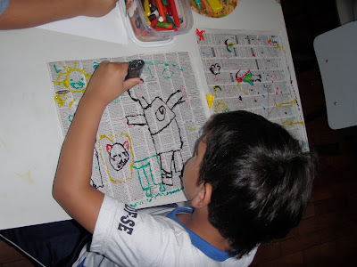 O toque divertido foi quando tiiveram que colorir de um modo especial: com papel.