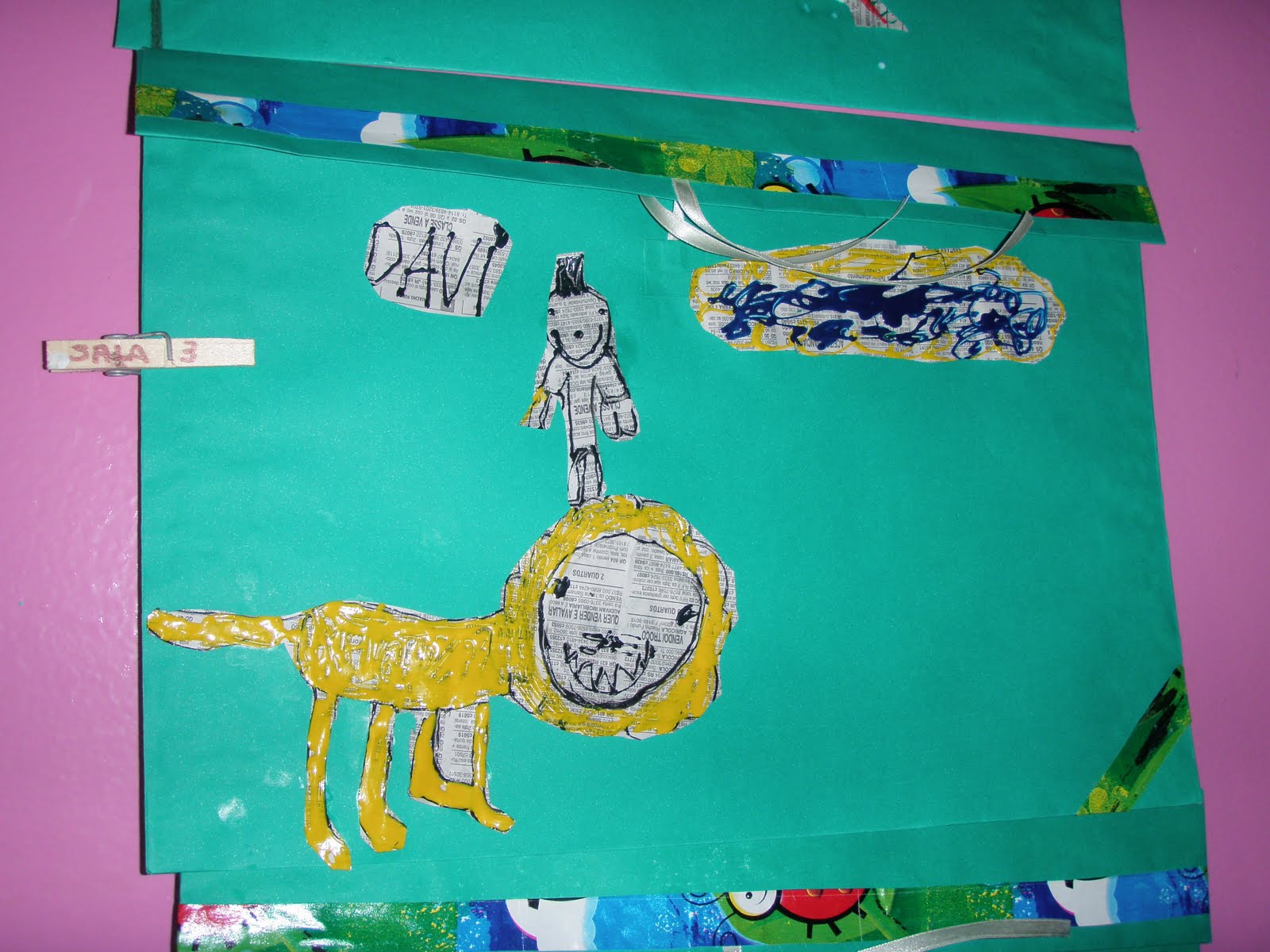 2-Depois de estarem secas as gravuras foram recortadas e coladas pela criança em envelope de papel dupla-face preparado por nós;