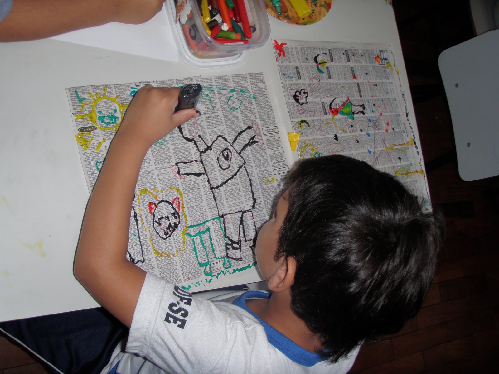 Completaram a cena com canetinha e giz de cera...