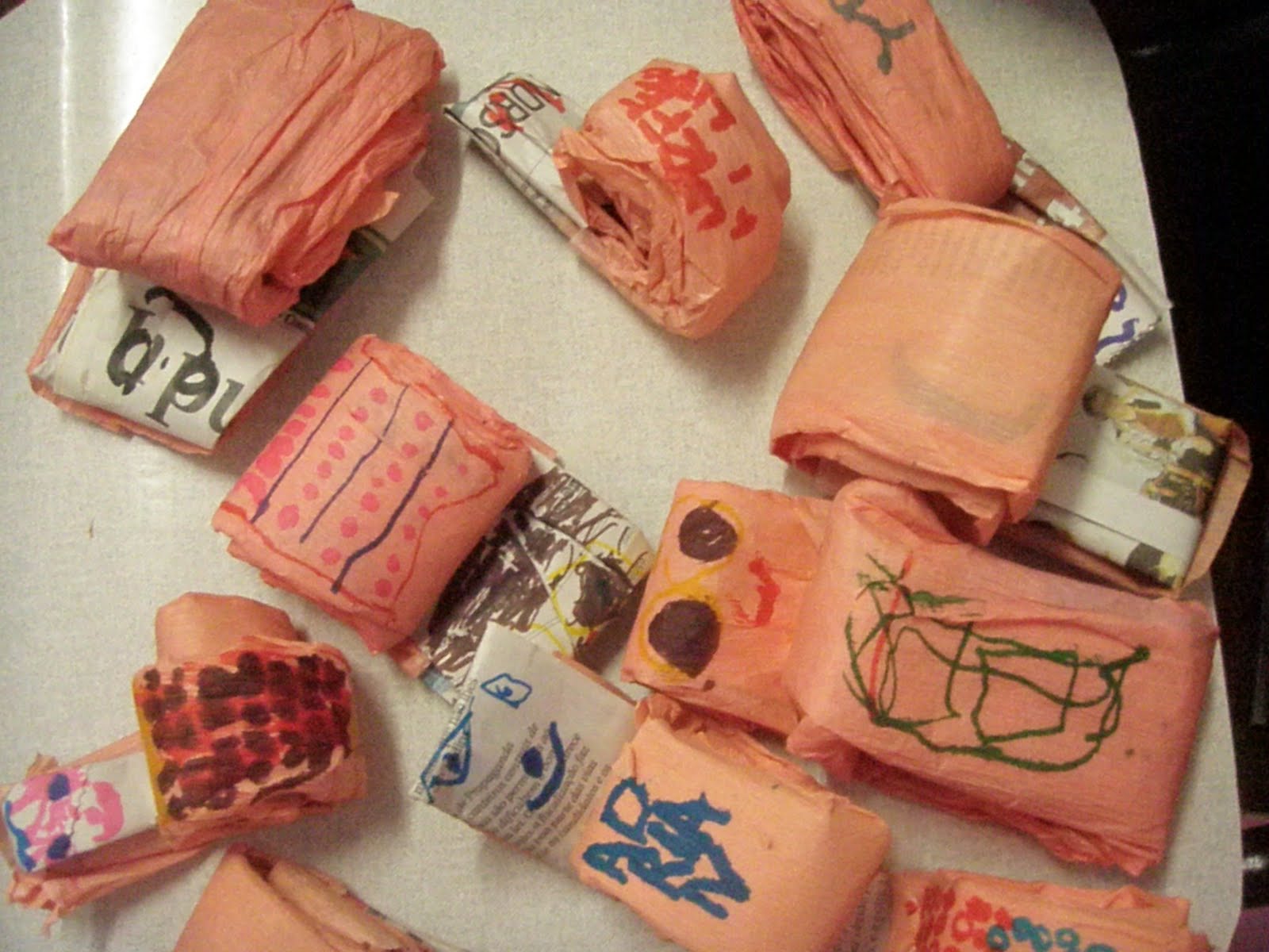 Encapamos com crepom, enrolando o jornal novamente...