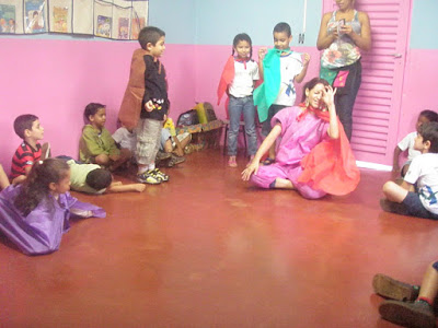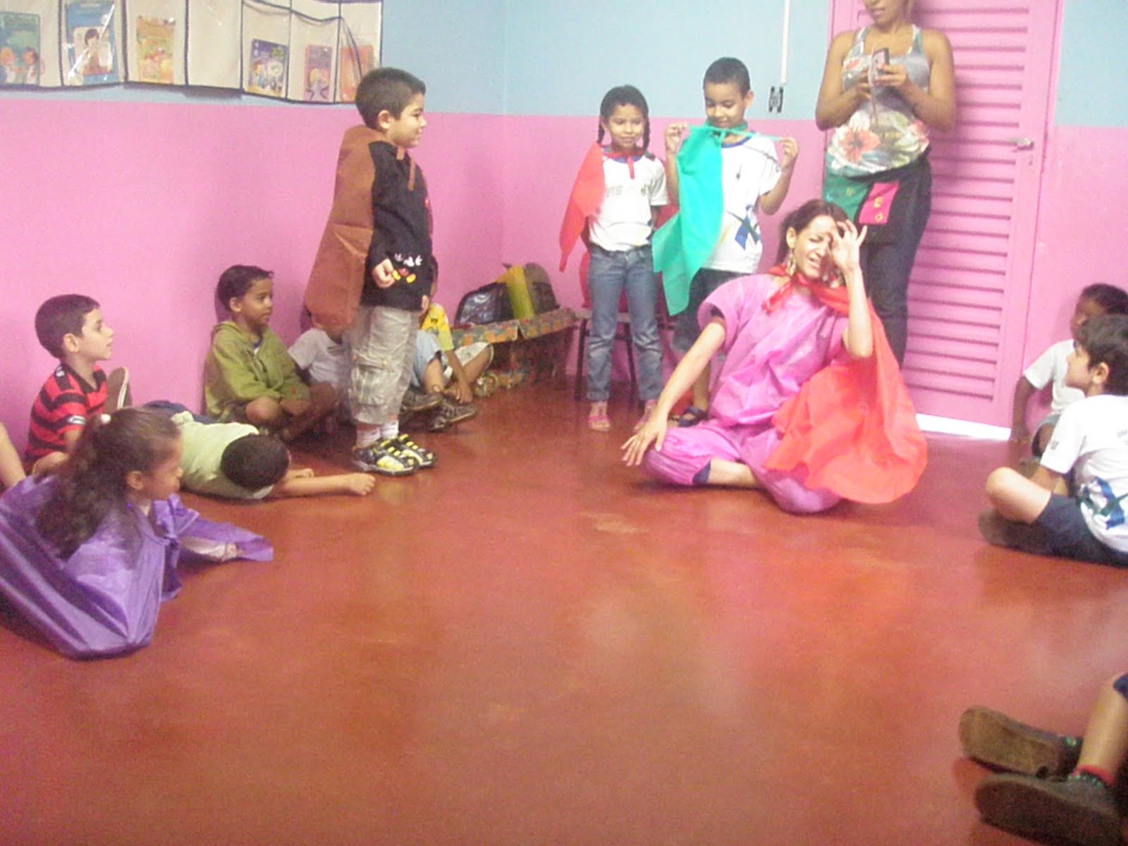 Em outro dia, de posse de fantasias, as crianças dramatizaram espontaneamente essa história...uma coisa linda de se ver...