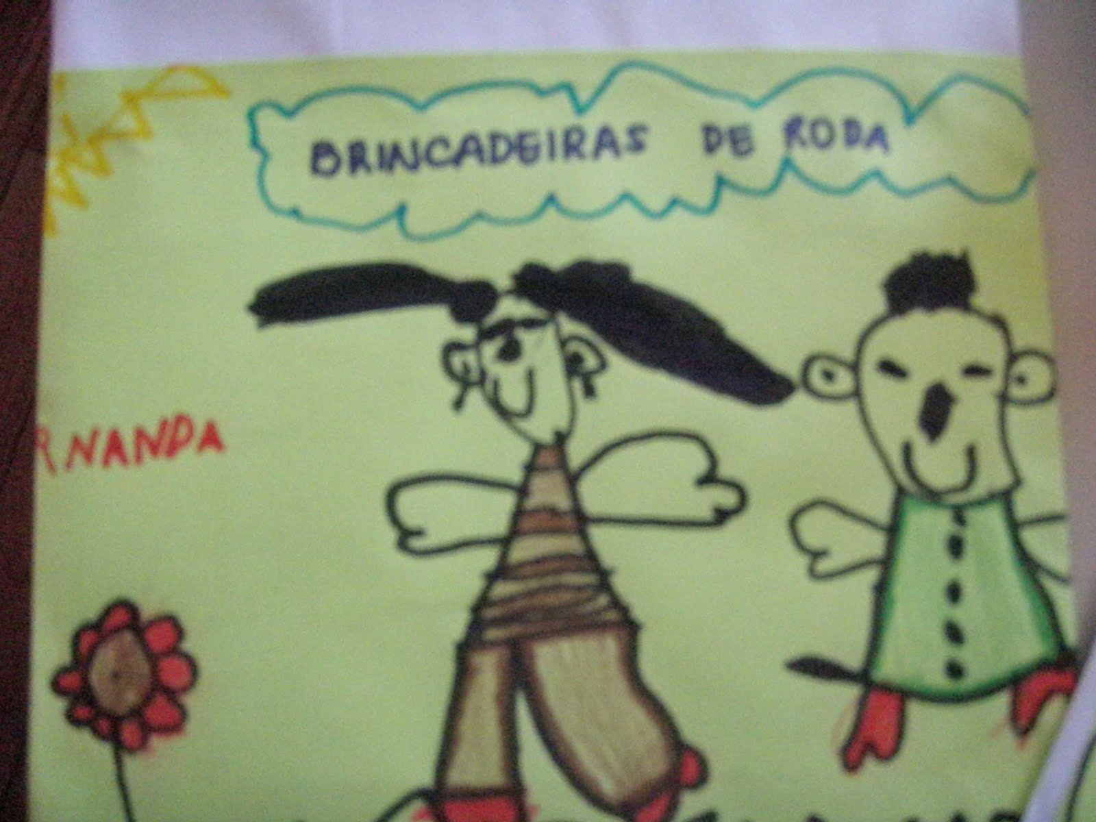 As crianças retrataram uma brincadeira de roda após brircarmos no parque desenhando com canetinha na capa do CD;