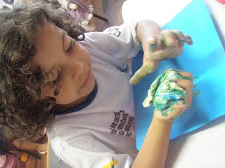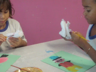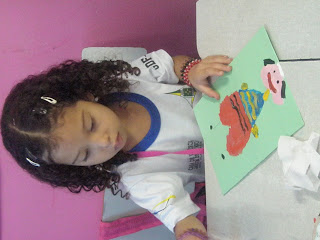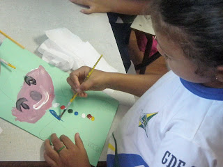 Com base nas informações das tias e dos colegas fizemos um RETRATO imaginando como ele seria...Gostoso desenhar com tintas coloridas...