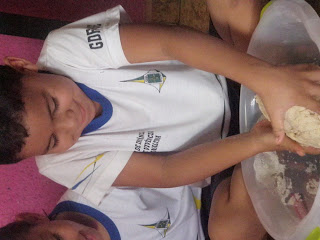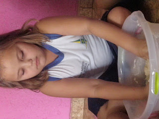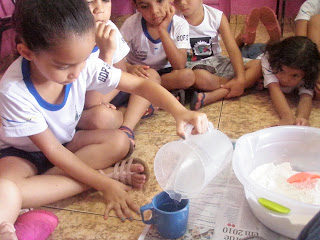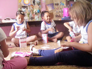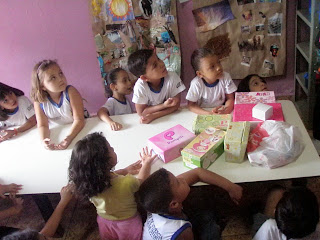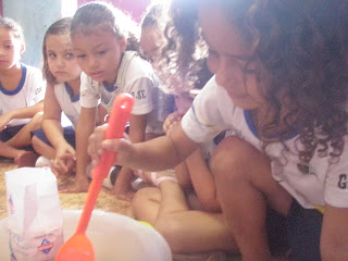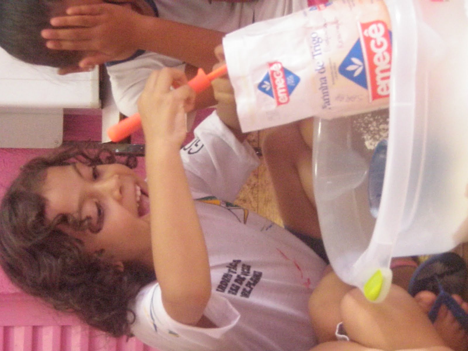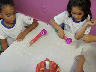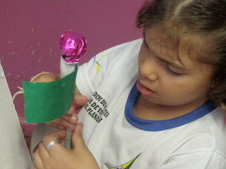 Todos prepararam microfones com jornal encapados com papéis coloridos( laminado e fantasia)