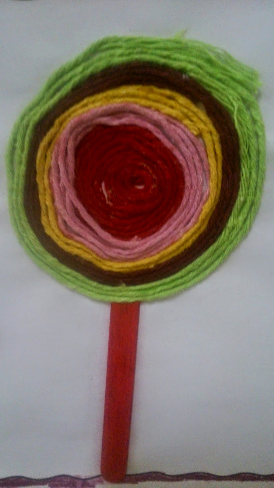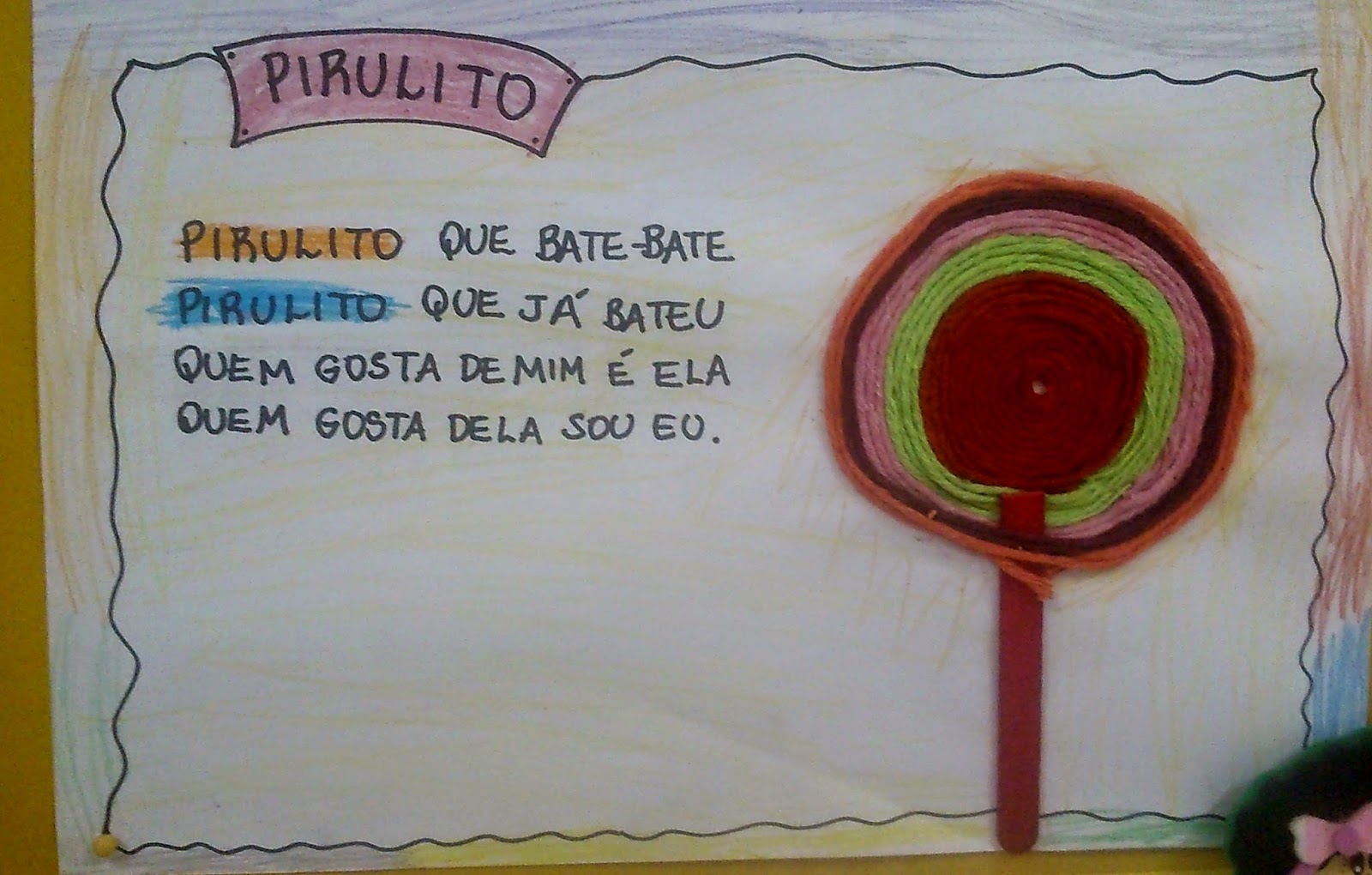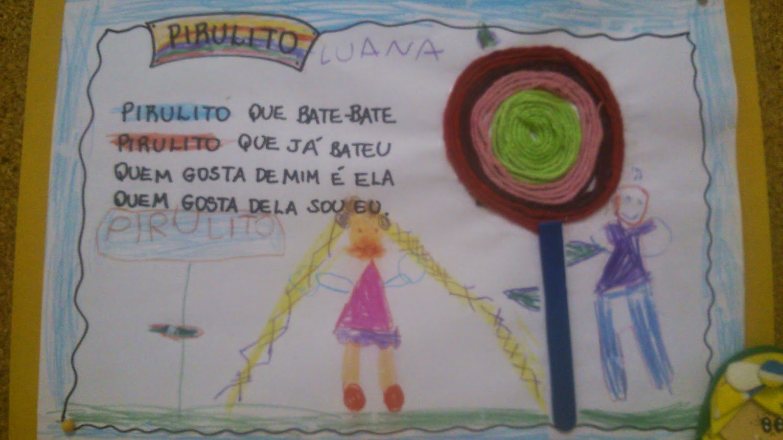 Depois de cantar a música folclórica fizemos o PIRULITO com barbante colorido!