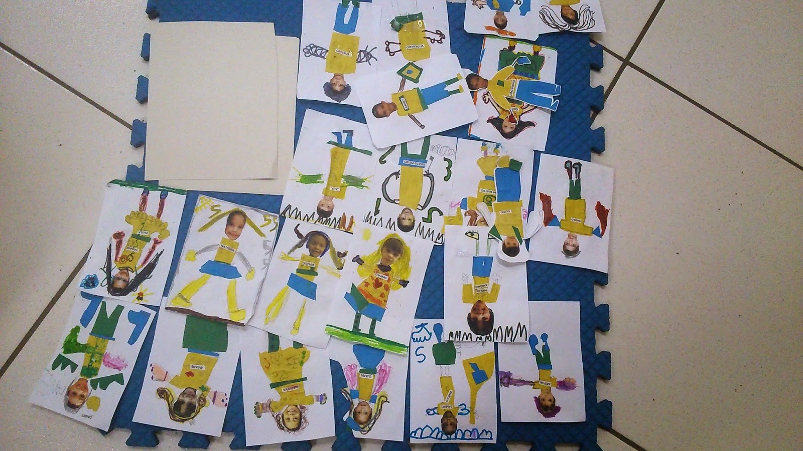 As perfeitinhas crianças sequer podiam escolher a cor de suas próprias roupinhas em seus autorretratos! E eram 25 "pessoinhas" com blusinhas, cabelinhos ou vestidinhos da mesma cor, com manguinhas na mesma posição, centralizadinhos na folha...sim, como numa pequena fábrica em cada sala, em cada jardim de infância, em plena idade das DESCOBERTAS!