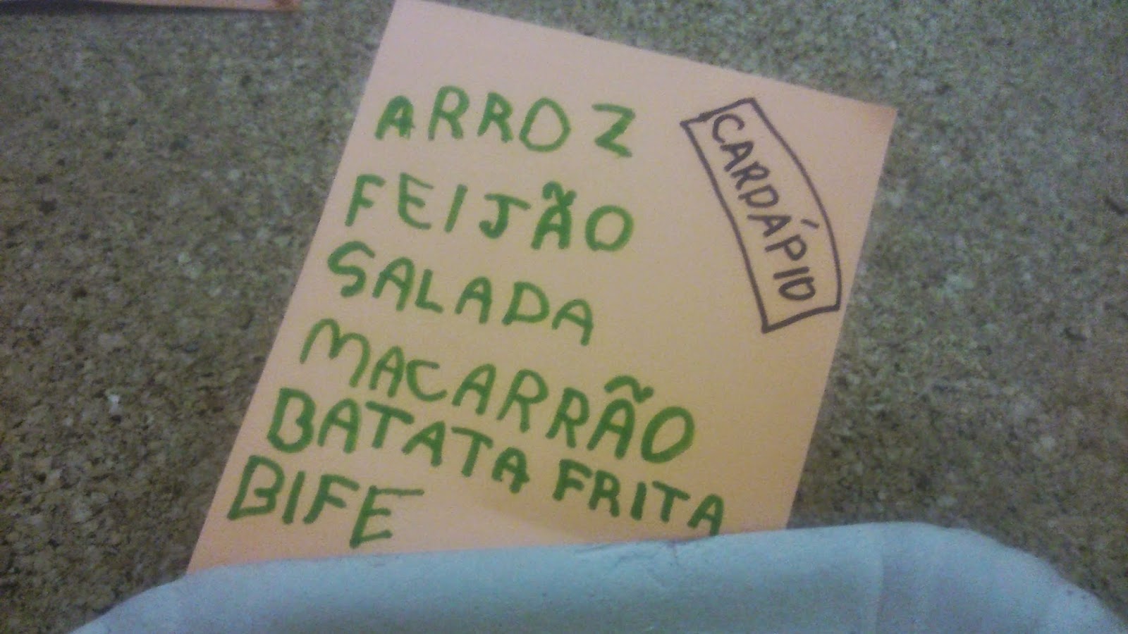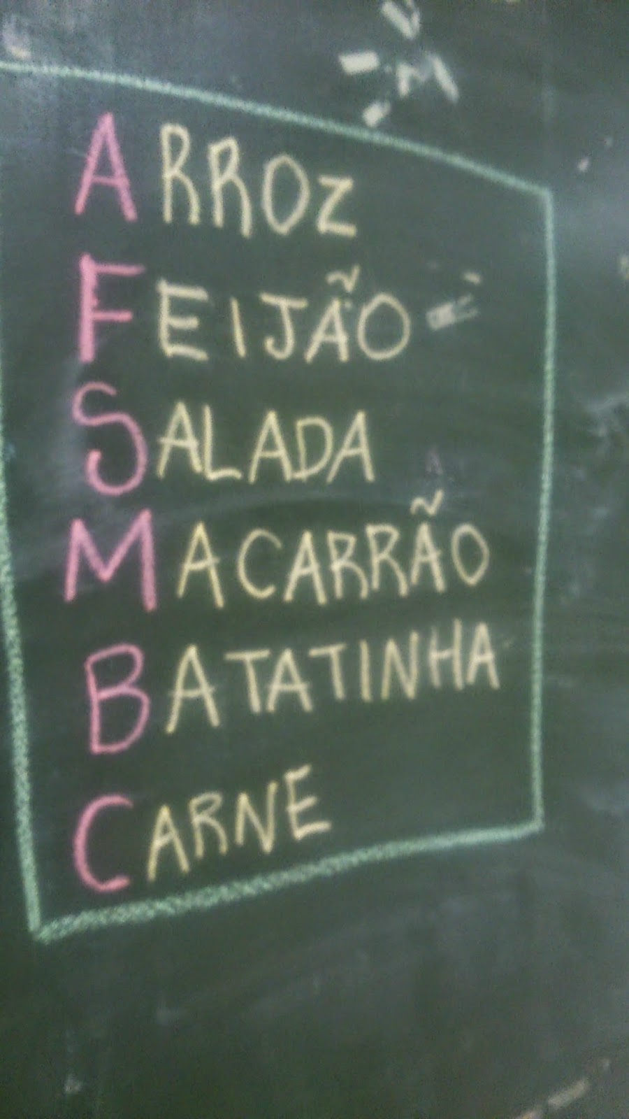 Os pratos a serem servidos eram parecidos com a parlendinha: "Arroz, Feijão, Salada e Macarrão!"