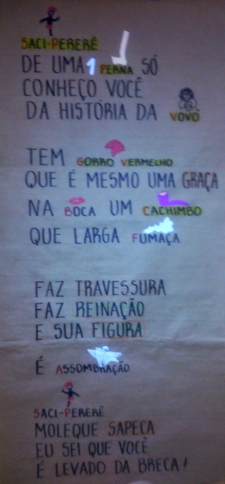 Textos trabalhados que ficam expostos levam as crianças à leituras espontâneas, sempre que desejam se aproximam do cartaz e "lêem" passando o dedo nas palavras/ilustrações, tornando-se mais confiantes e estimulados, sem grandes cobranças, o letramento vai sendo vivenciado com ludicidade.