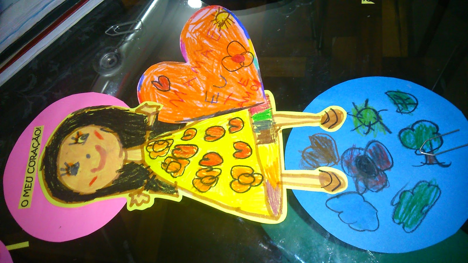Como sempre, com artes das crianças, recortes, colagens de papéis, tecidos, fotografias, guache e uma pitada de prazer e criatividade!