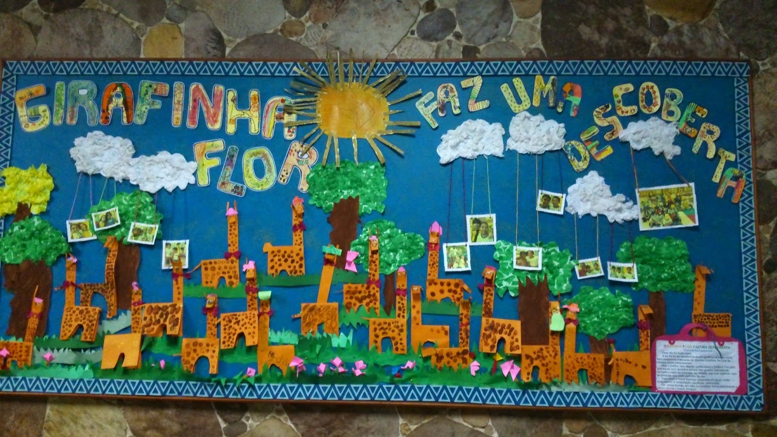 Na escola da Nice os murais são fora das salas, cada turma pode expor constantemente as suas produções nos painéis dos corredores...