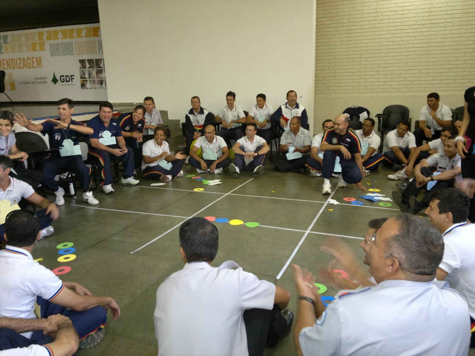 Cada artista pegou um potinho da cor que quis e colocou no meio do círculo, no chão...