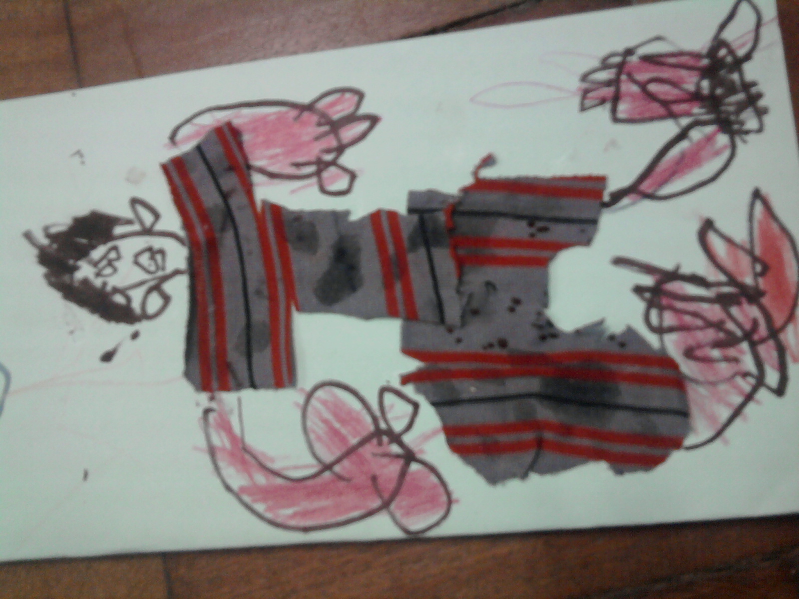 Depois colou no cartaz e completou com o autorretrato...
