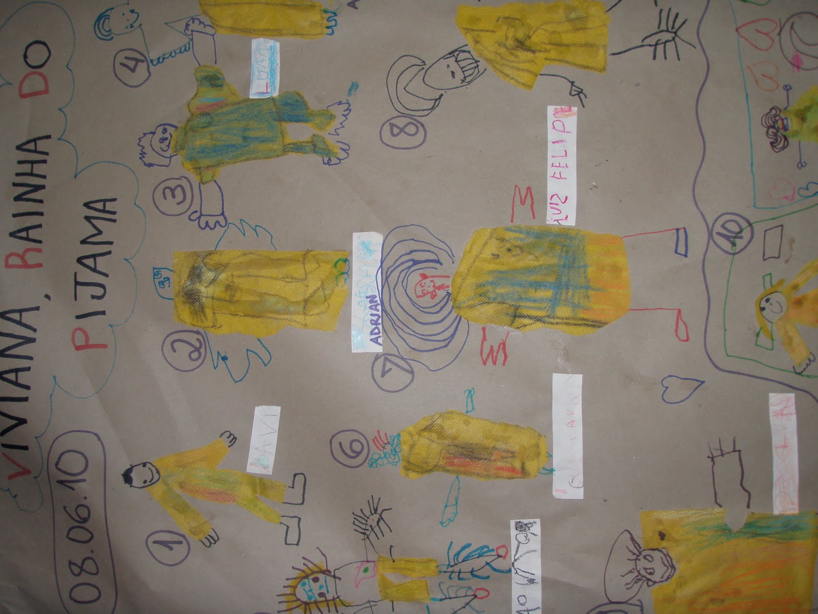 Para a Festa de Encerramento e Aniversariantes do Semestre produzimos este convite com canetinhas e tecidos coloridos, eles e seus pijamas!