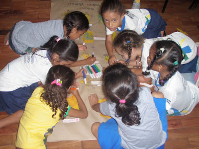 Em grupinhos foram produzindo a atividade no chão, uma delícia para eles!