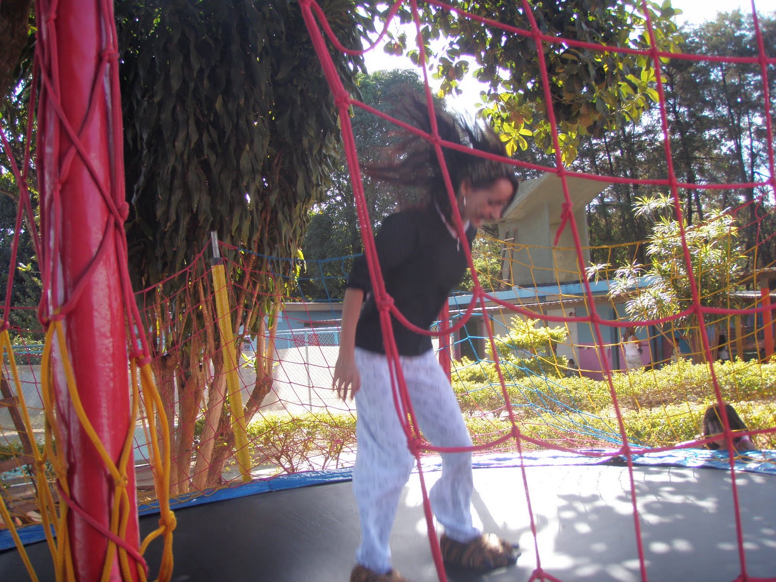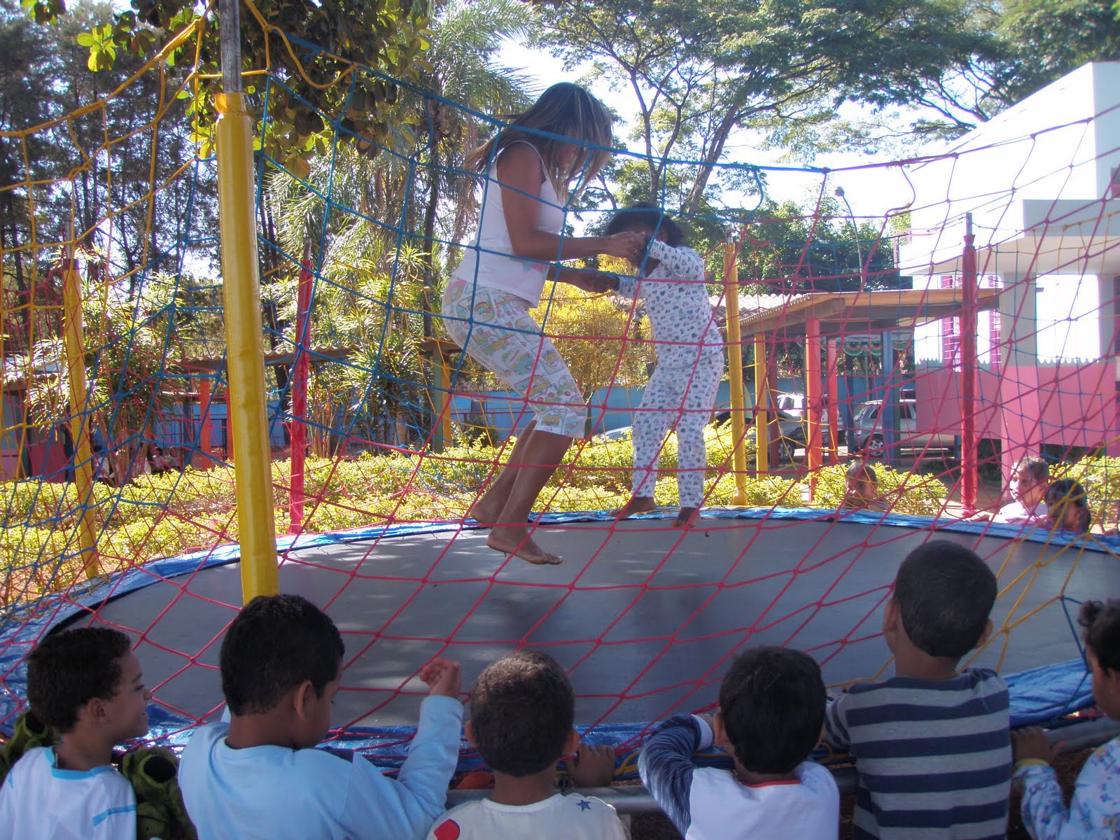 Brincamos na cama elástica que nós alugamos...