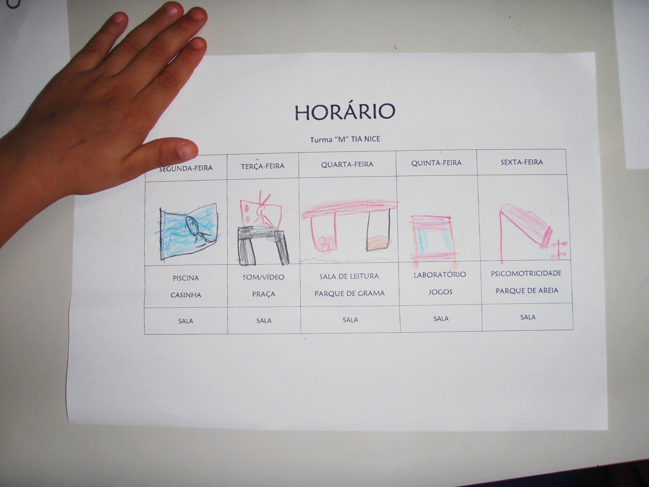 Em nosso caso, a rotina nos espaços é sempre a mesma durante a semana, o que muda são as atividades, a exploração das mesmas, os conteúdos trabalhados em cada local.