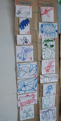 -Separamos os animais desenhados por símbolos: flor(menina), folha(menino) e casa(ausentes);
