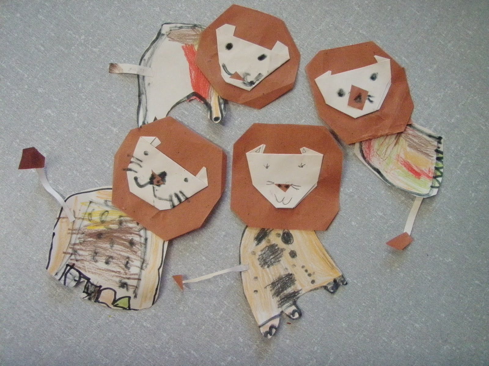 O leão, confeccionado em outro dia, também foi produzido com desenhos, recortes e dobradura;