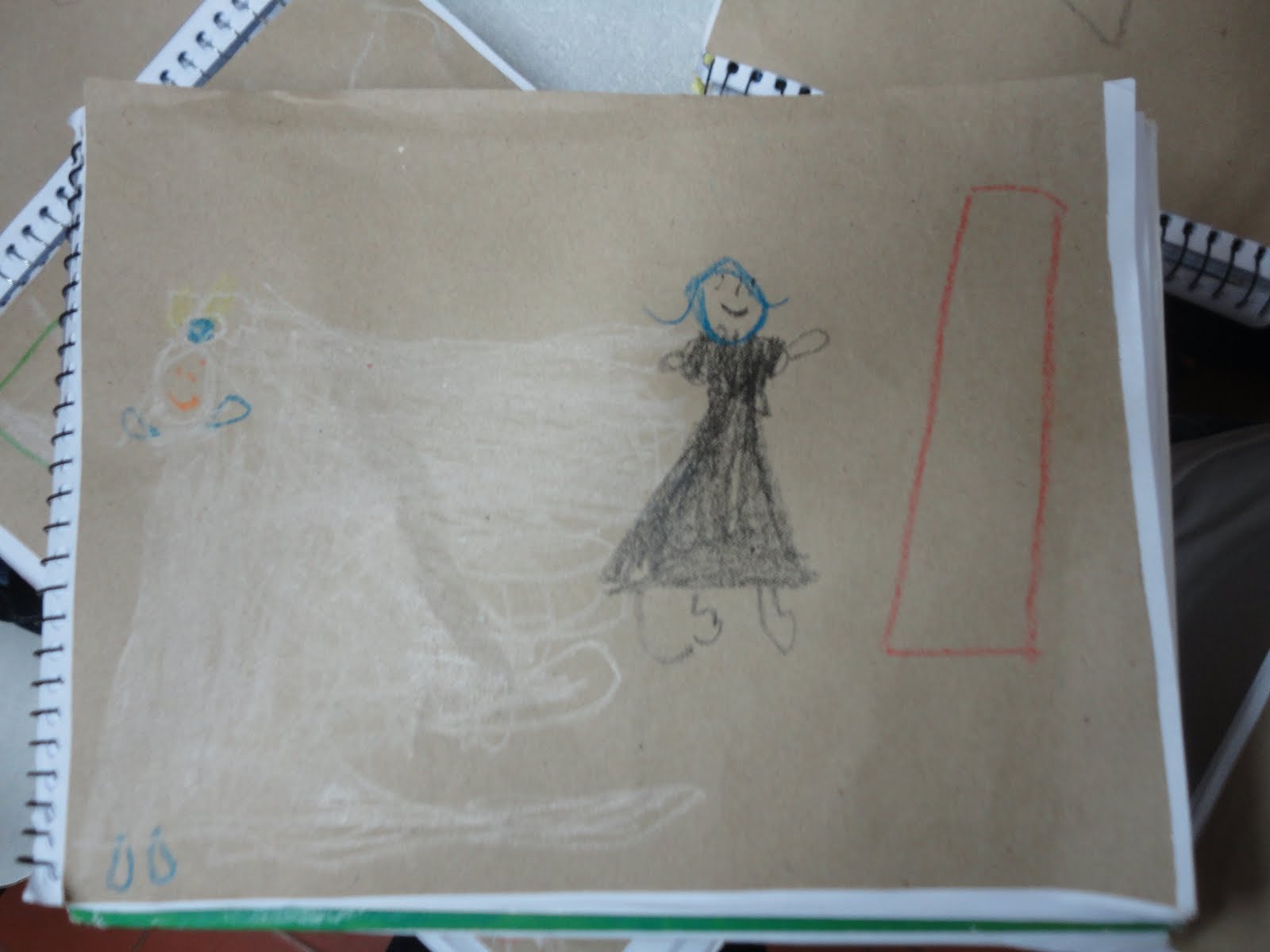 O registro no caderno foi feito com recorte e colagem de papéis coloridos...