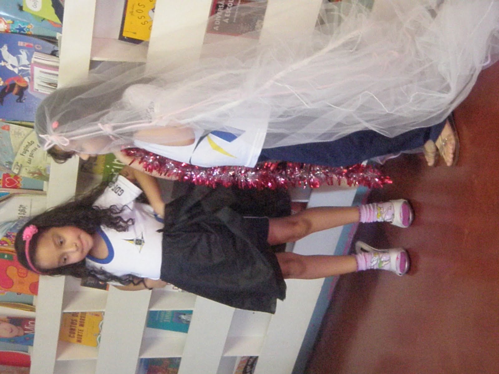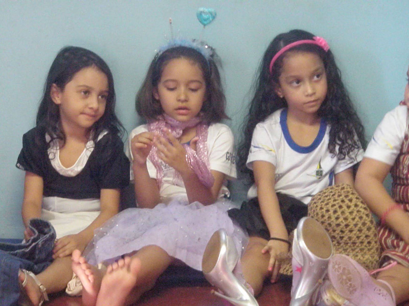Algumas meninas começaram a organizar os sapatos durante a espera...